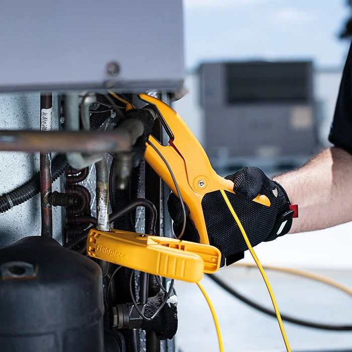 Pour contrôler les composants électriques de la pompe à chaleur, comme, par exemple, le compresseur, il peut être nécessaire de mesurer la tension ou le courant. Pour les mesures électrotechniques les plus courantes, un bon multimètre est une excellente solution. Pour les mesures de courant, une bonne pince ampèremétrique est idéale. Il existe même des pinces wattmétriques qui permettent de mesurer la puissance d’un compresseur ou d’une pompe.