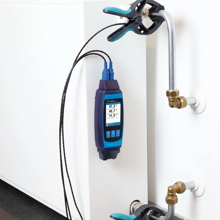 La température dans la maison, la température extérieure, la différence de température entre les conduites d’arrivée et d’évacuation de l’agent réfrigérant, etc. Un dispositif précis de mesure (du différentiel) de température avec les sondes de mesure adéquates a son utilité dans d’innombrables applications. BLAUWE LIJN (LIGNE BLEUE) offre différentes bonnes solutions, les résultats des mesures pouvant être enregistrés dans une mémoire interne ou communiqués par Bluetooth à un smartphone ou une tablette avec l’appli EuroSoft connect gratuite pour des rapports de mesure professionnels.