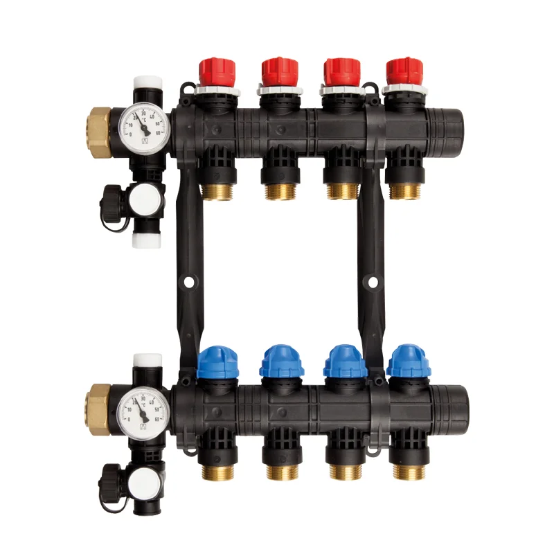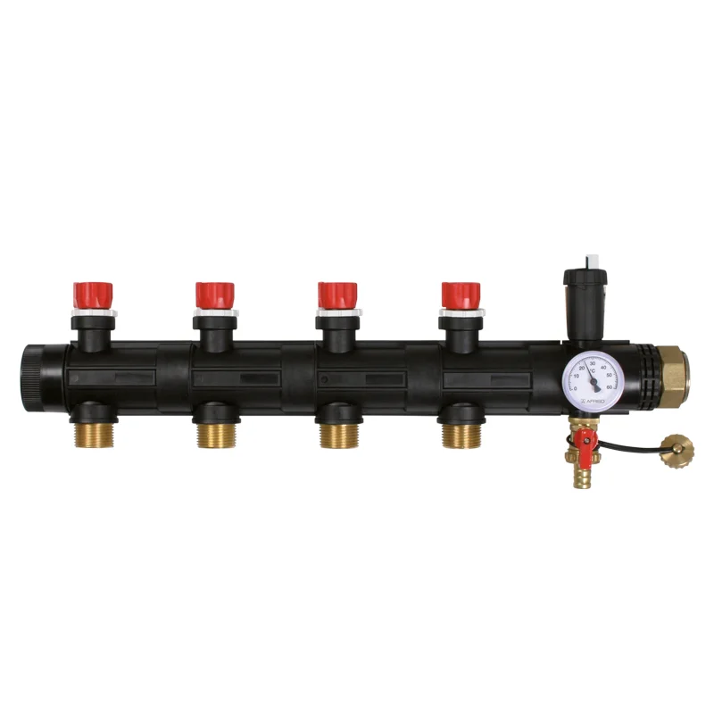 Chez EURO-INDEX, nous proposons une large gamme de collecteurs en matière synthétique de haute qualité, idéaux pour les systèmes de chauffage au sol, de climatisation et géothermiques. Les matériaux utilisés sont de première qualité, ce qui les rend résistants à la corrosion et aux dépôts. Les thermomètres, les débitmètres et autres accessoires sont facilement intégrables dans les systèmes existants. En plus des collecteurs, nous offrons un large éventail d'accessoires pour compléter votre système.