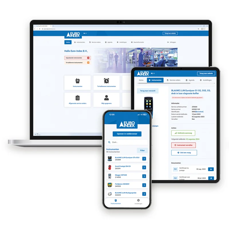 Iedereen die één of meer instrumenten laat onderhouden en kalibreren bij EURO-INDEX krijgt automatisch een uitnodiging voor Mijn KWS. Deze uitnodiging bevat een link waarmee u een account kan aanmaken met uw persoonlijke wachtwoord en u direct van alle voordelen van Mijn KWS gebruik kunt maken.