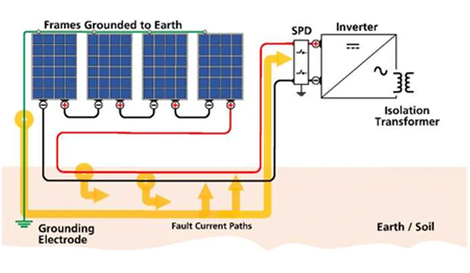 Zonne-energie-installaties kunnen hoge gelijkspanning produceren. De schokken van gelijkstroombronnen zijn bijzonder gevaarlijk en de verbindingen met hun aardingscomponenten kunnen verschillende risico’s inhouden zoals elektrische schokken voor personen die zich in de nabijheid bevinden, brand in geval van defecten, overdracht van door bliksem veroorzaakte overspanningen en de aanwezigheid van elektromagnetische storingen.