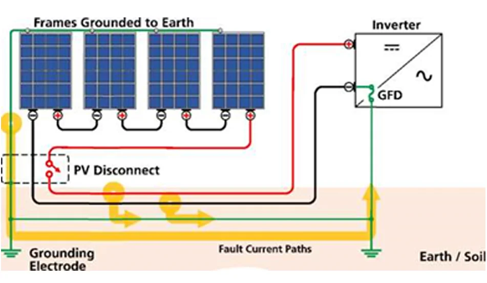 In aardsystemen, waarbij een aardfoutconditie gedetecteerd wordt door de stroomafgifte in een geaarde geleider en aardelektrode, wordt het circuit geopend en geeft de omvormer een aardfoutalarm weer. De verbinding tussen de geaarde geleider en het aardelektrodesysteem wordt normaal via de aardfoutbeveiliging gemaakt.